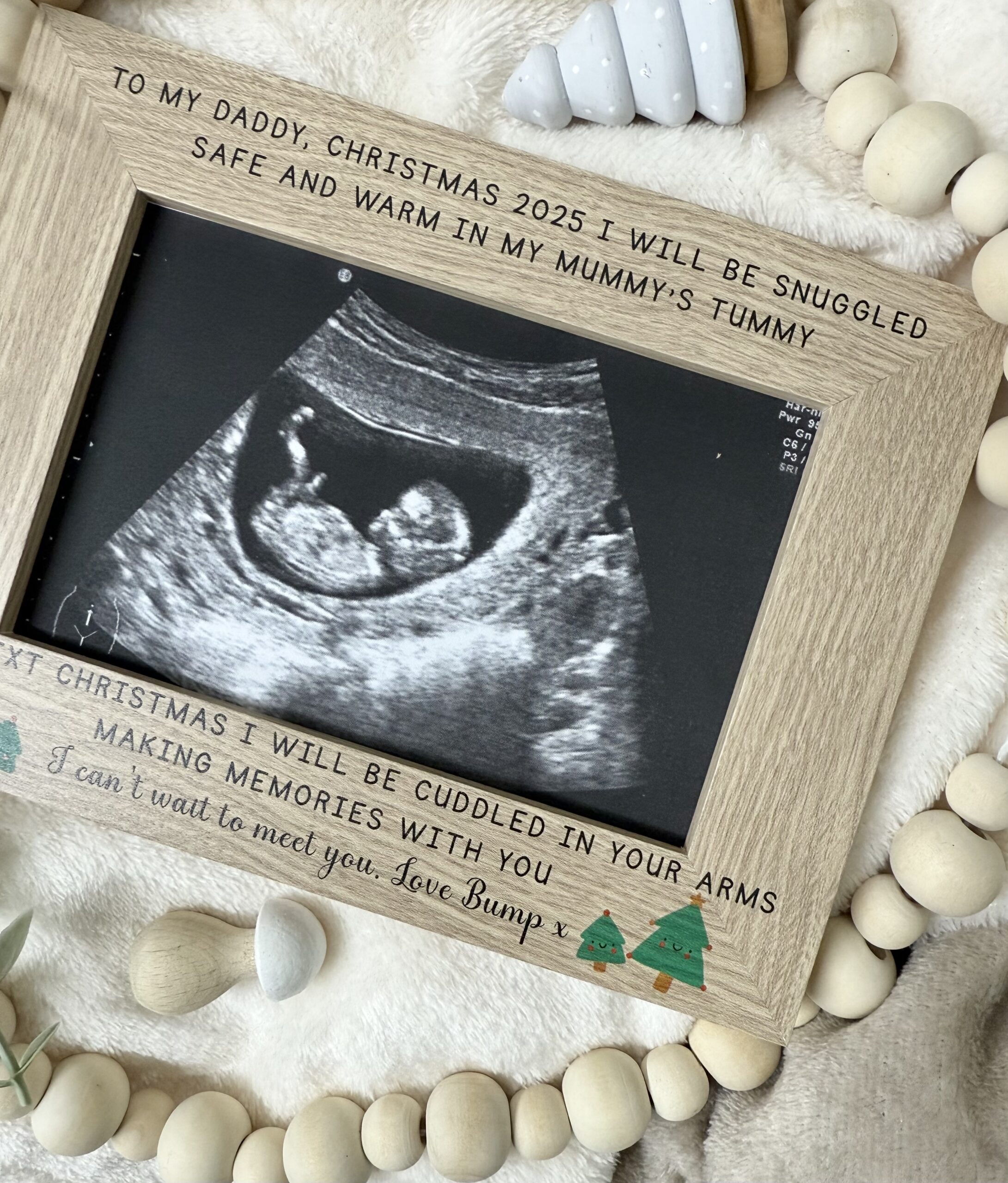 Expertly colour printed and personalised with your chosen names this wooden ultra sound scan photo frame will make the perfect gift for a very excited Daddy To Be this Christmas.