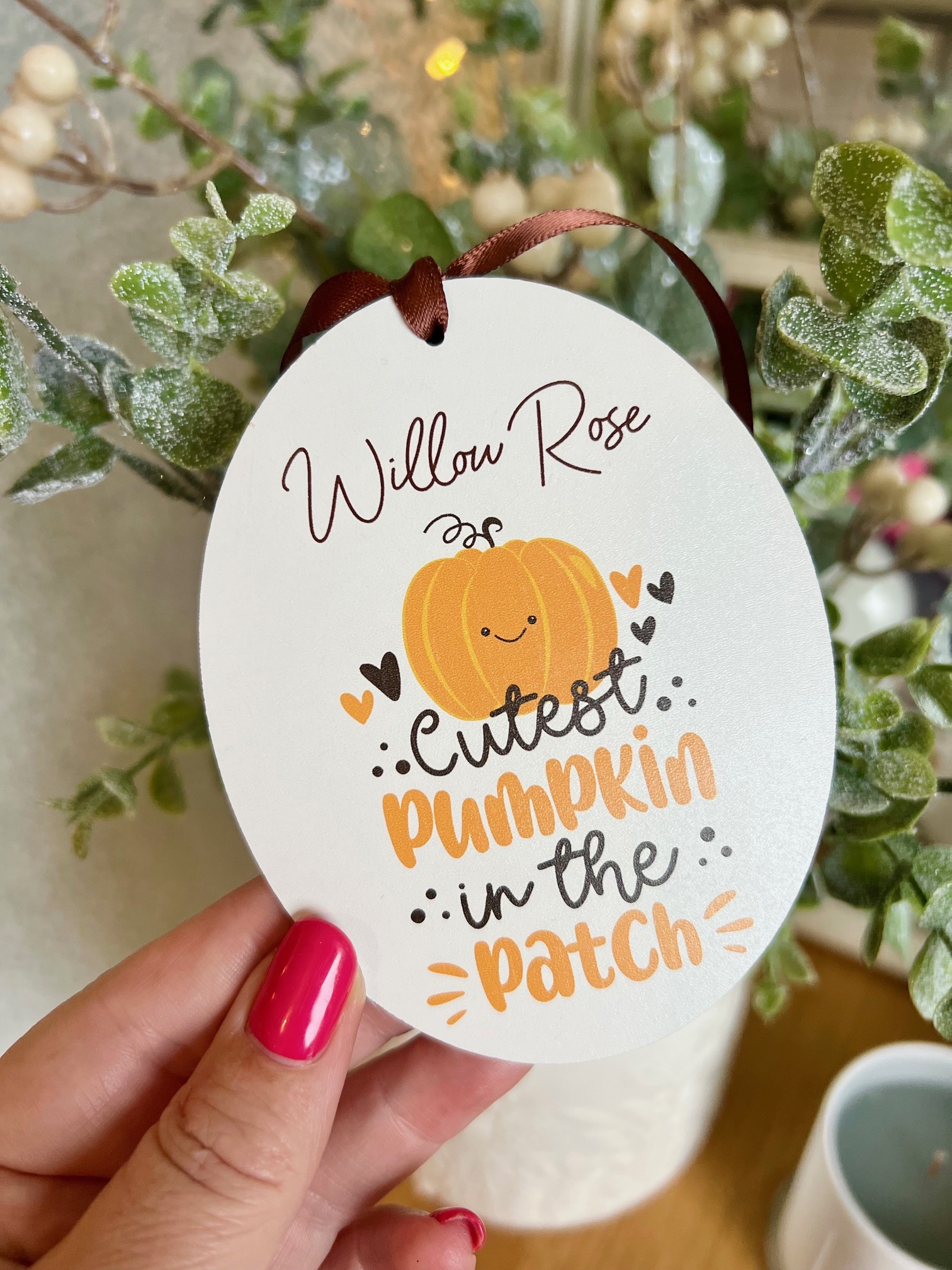 Perfect for your little one’s first Halloween, this adorable wooden ornament is beautifully printed with the words “CUTEST PUMPKIN IN THE PATCH” and personalised with your chosen name.