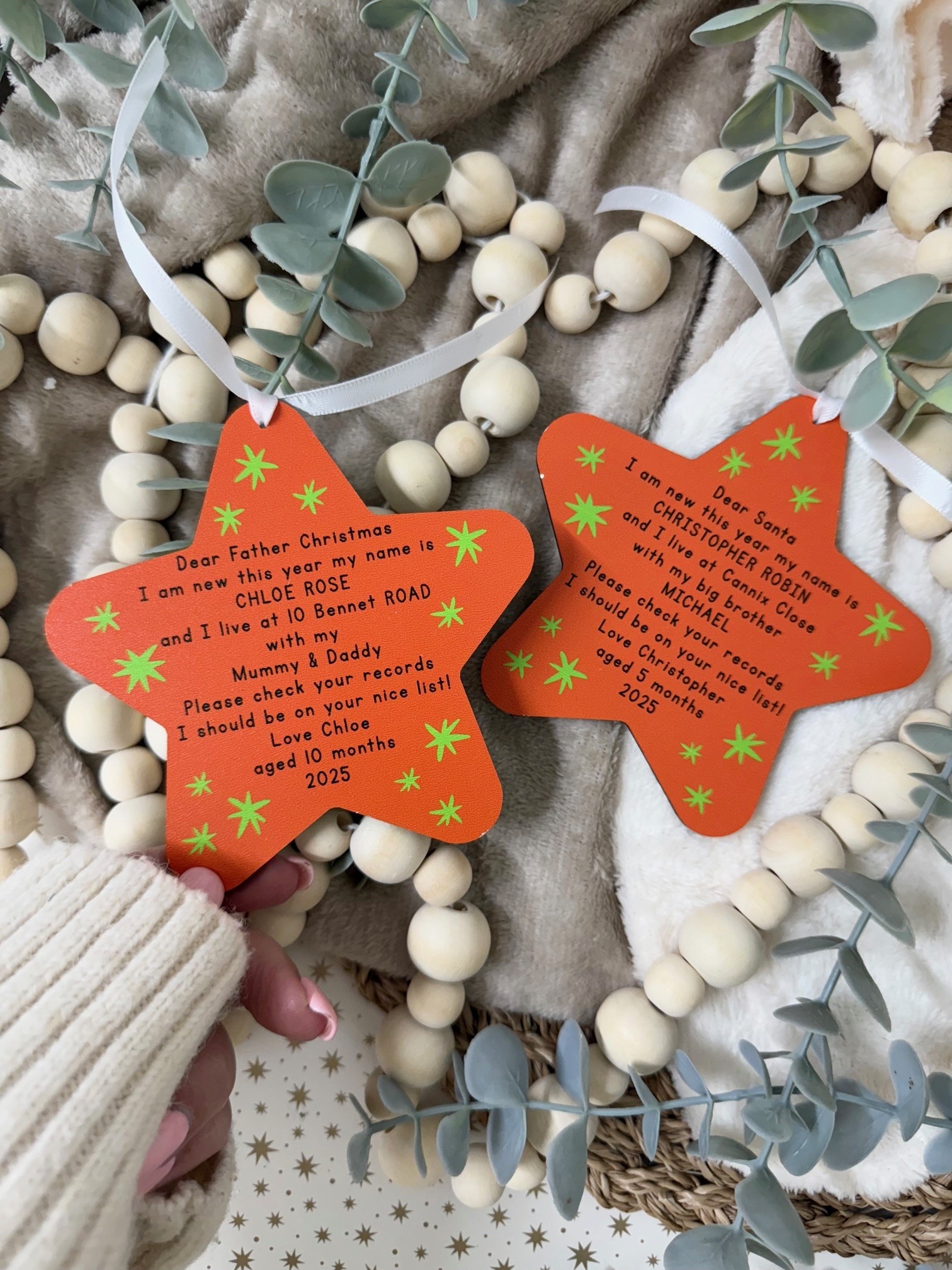 A gorgeous star personalised with your new additions name, address and age ….a perfect keepsake to be hung on the tree for years to come!