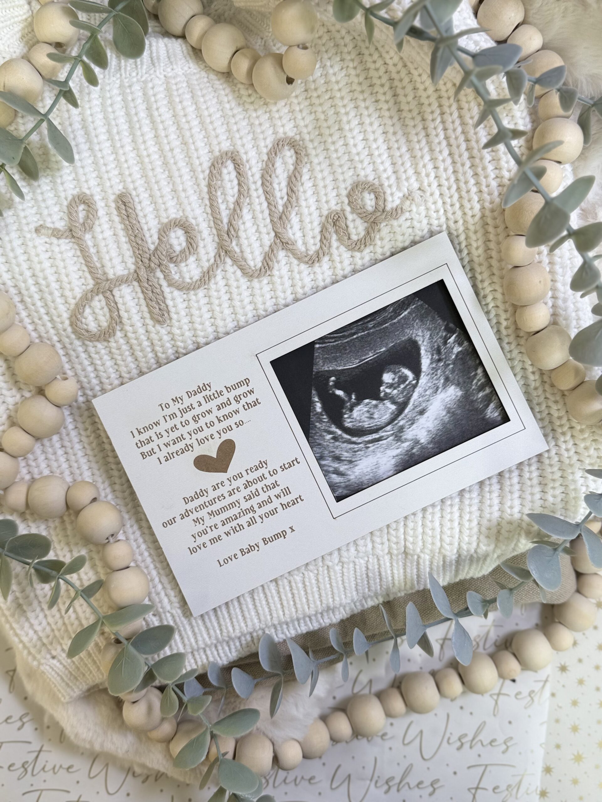 This cute little white frame decoration is a beautiful way to capture that very precious baby bump scan image.