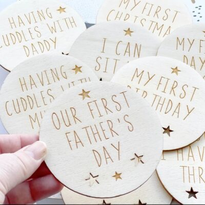 These beautiful wooden plaques are designed to help capture those special moments in your baby’s first year!