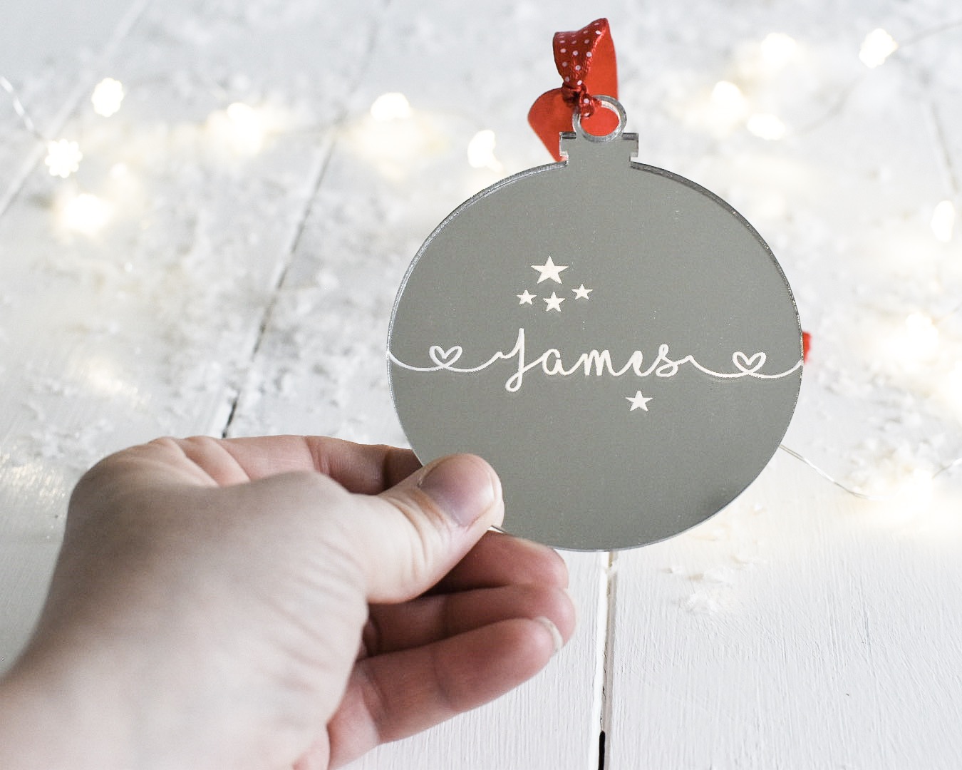 Our cute mirrored acrylic hanging baubles are made to order making them truly special and unique.