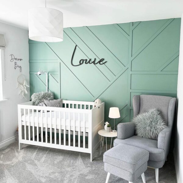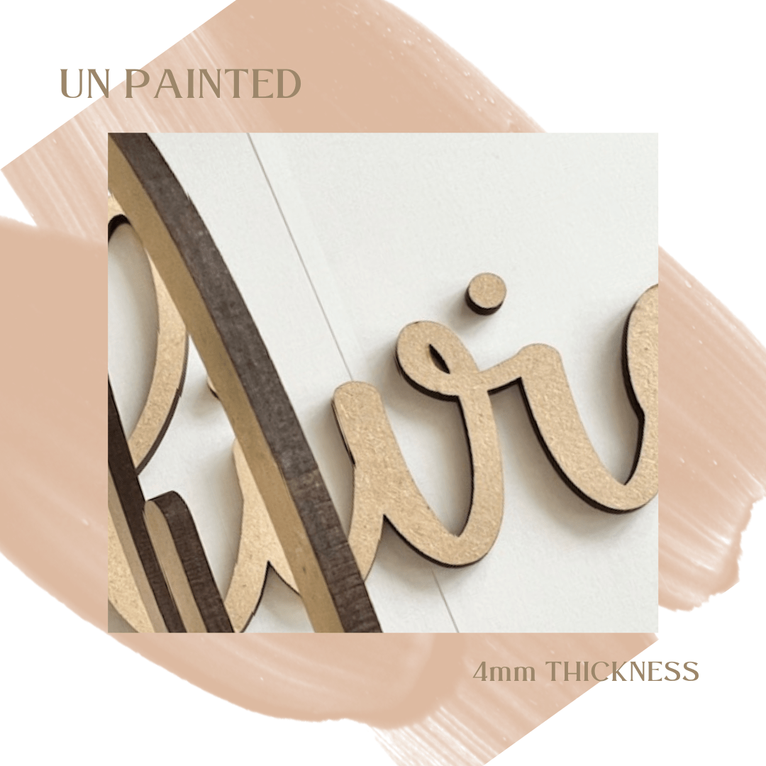 Our beautifully crafted name (or word) signs are expertly laser cut from durable light weight 4mm wood making them perfect for hanging upon the wall, on your child’s bedroom door or on your little ones toy box.