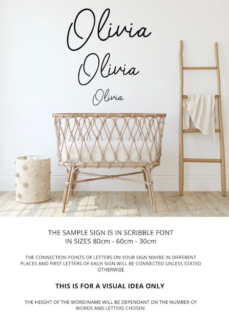 Wooden Name Sign SCRIBBLE FONT (Various Colour & Size Options)